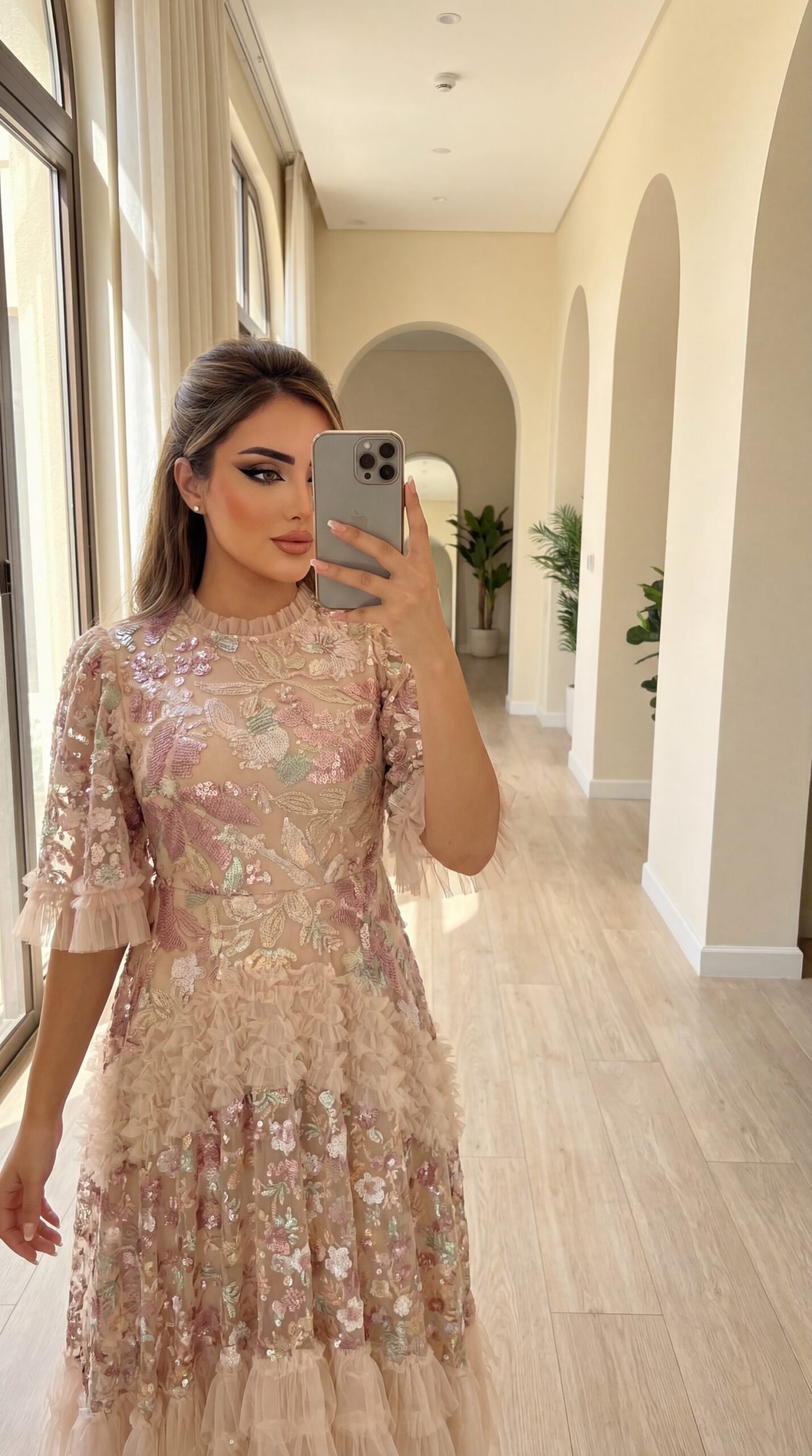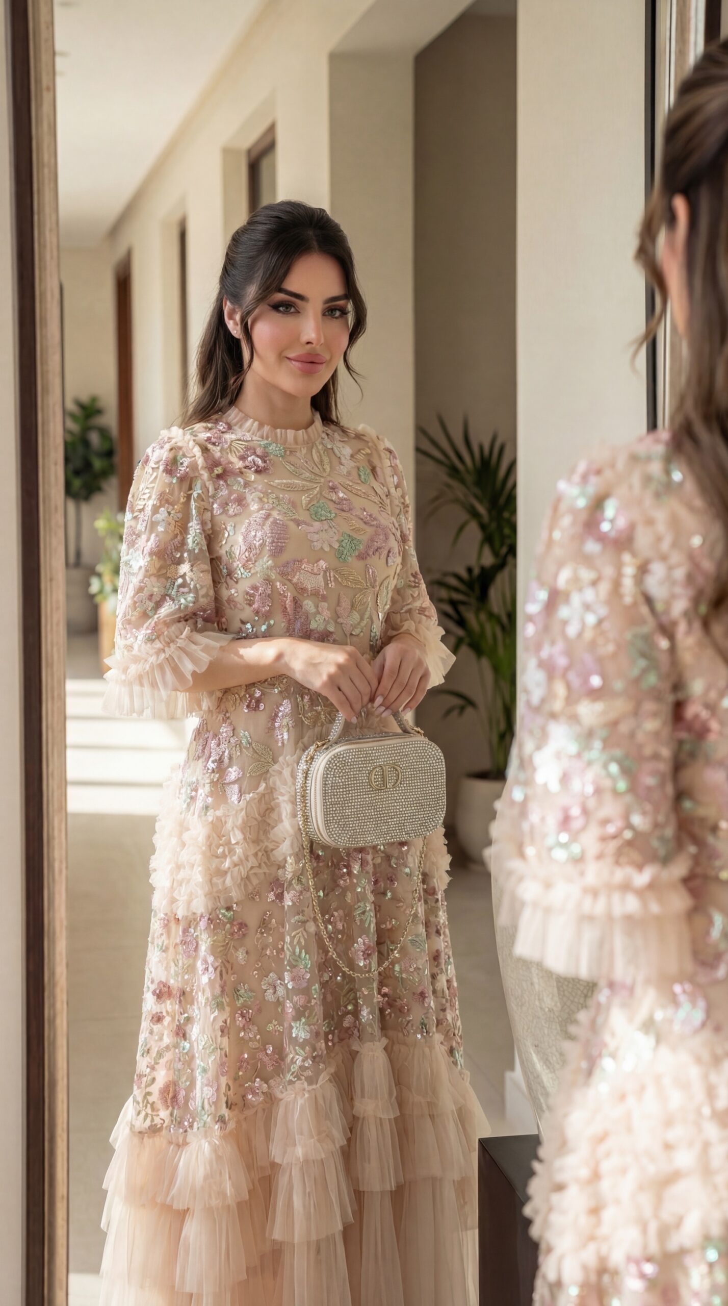 تصميم فاخر للمناسبات من الدانتيل الفرنسي و الترتر بالوان انثوية