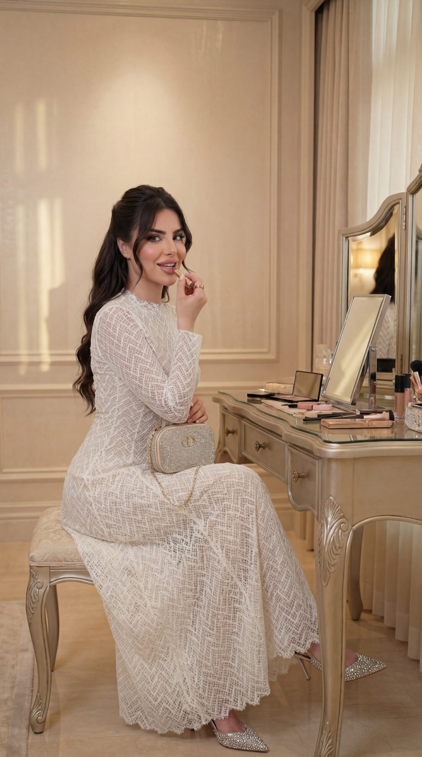 نوع القماش : دانتيل قابل للتمدد (استرج)
