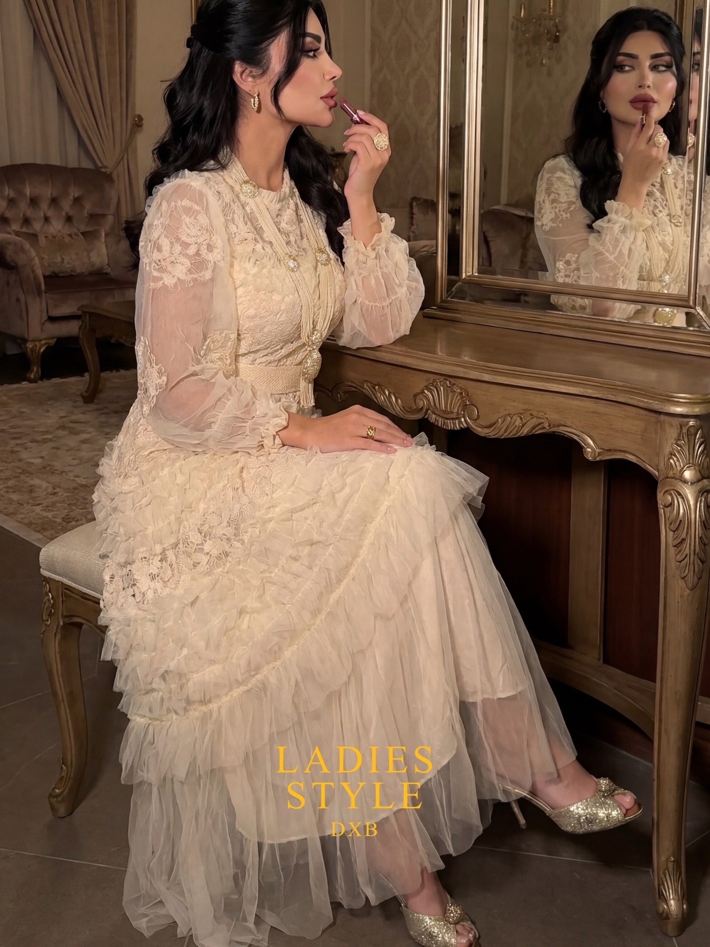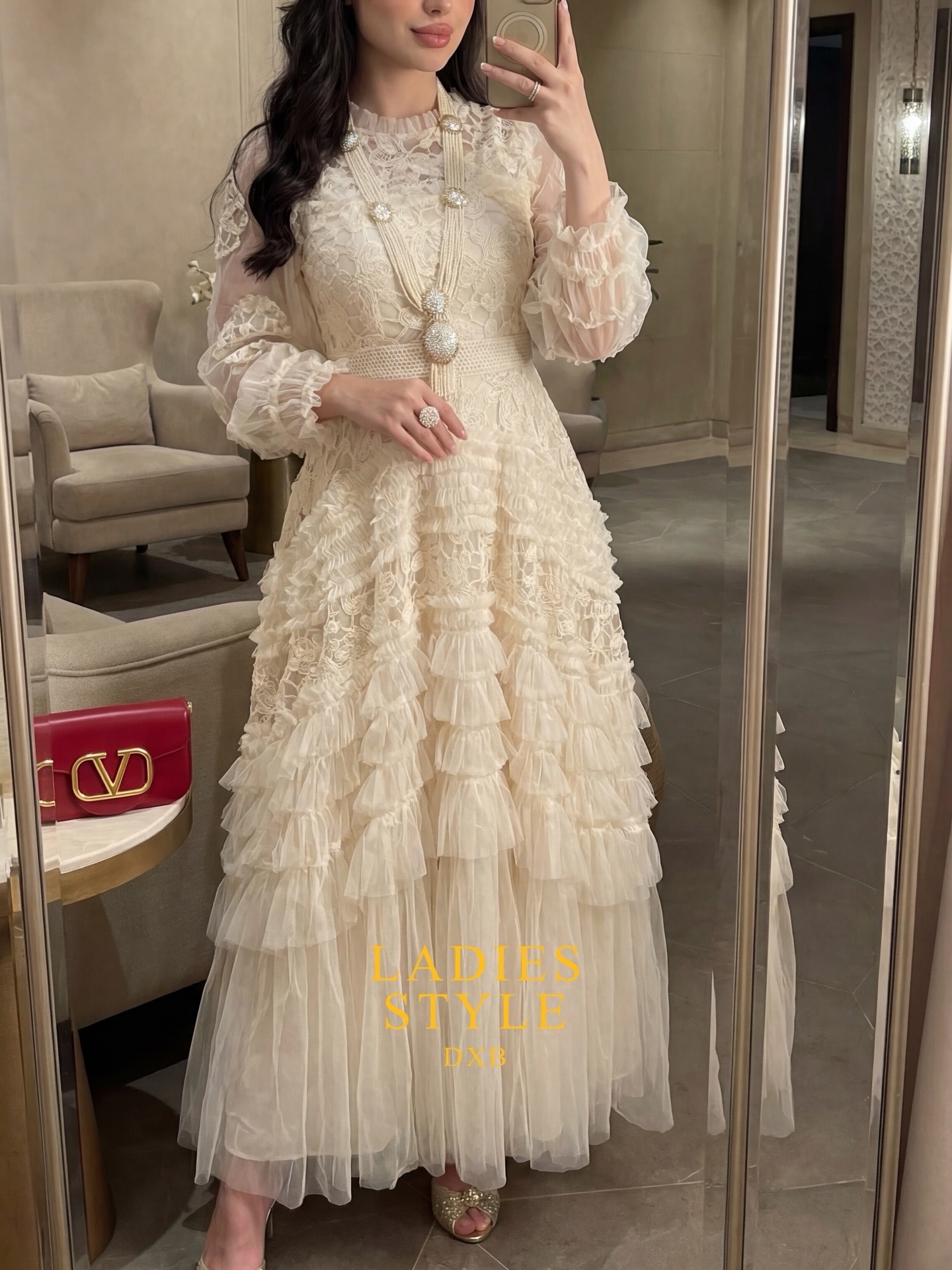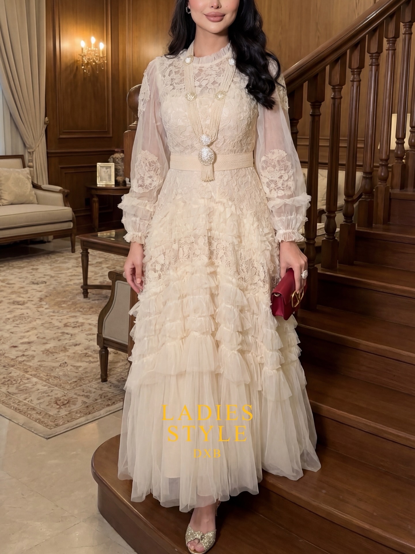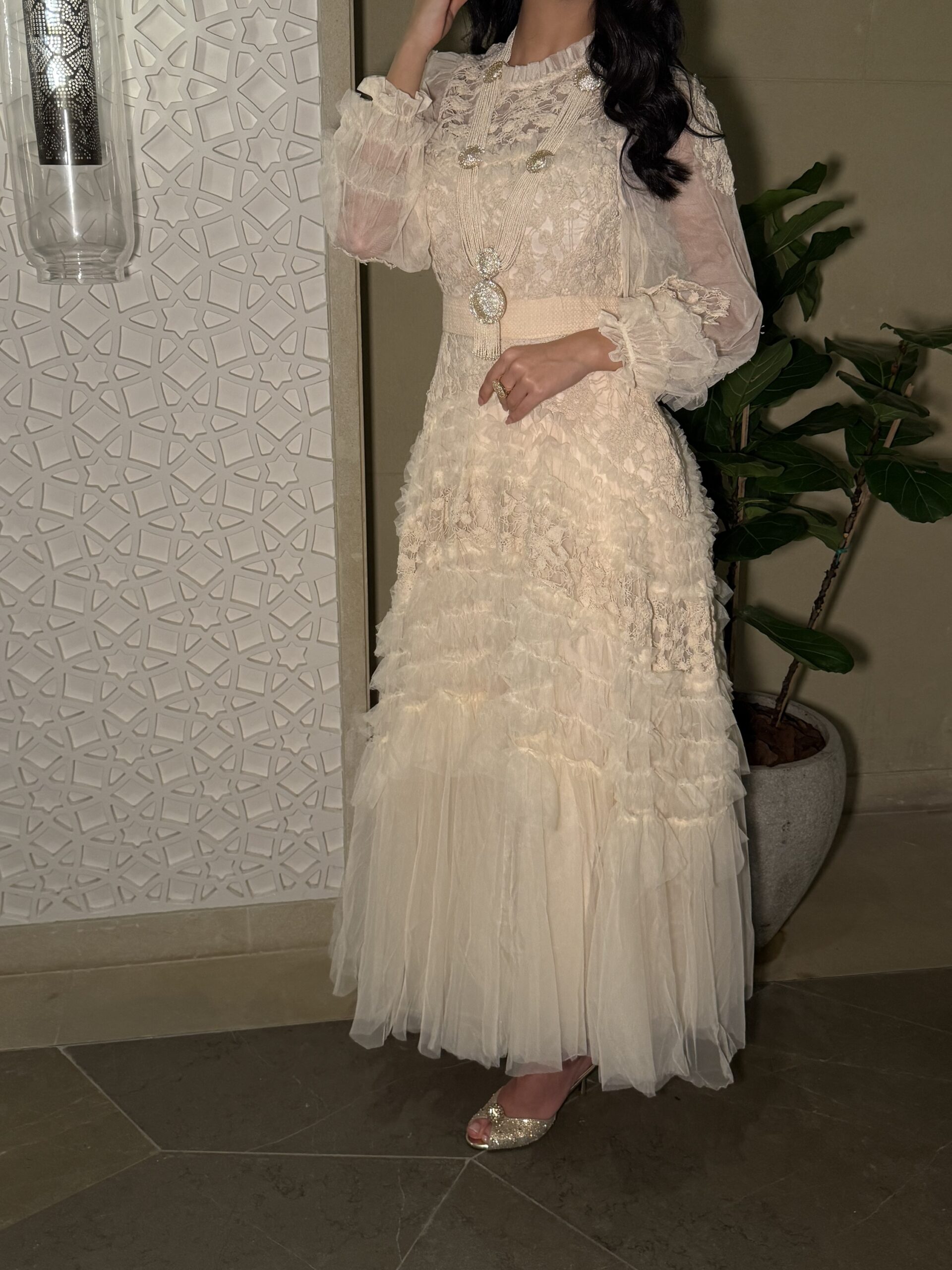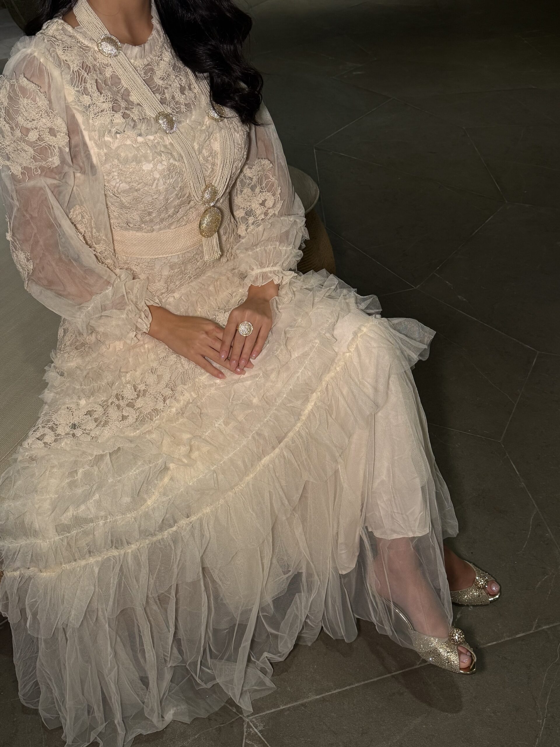 نوع القماش : تور إيطالي مع دانتيل